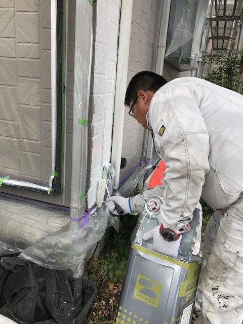 従来のペンキとは違い、薄い膜厚で壁紙本来の風合い(凸凹)を損なうことなく、ムラなく汚れを隠し、アッという間に真っ白にキレイにすることが出来ます。